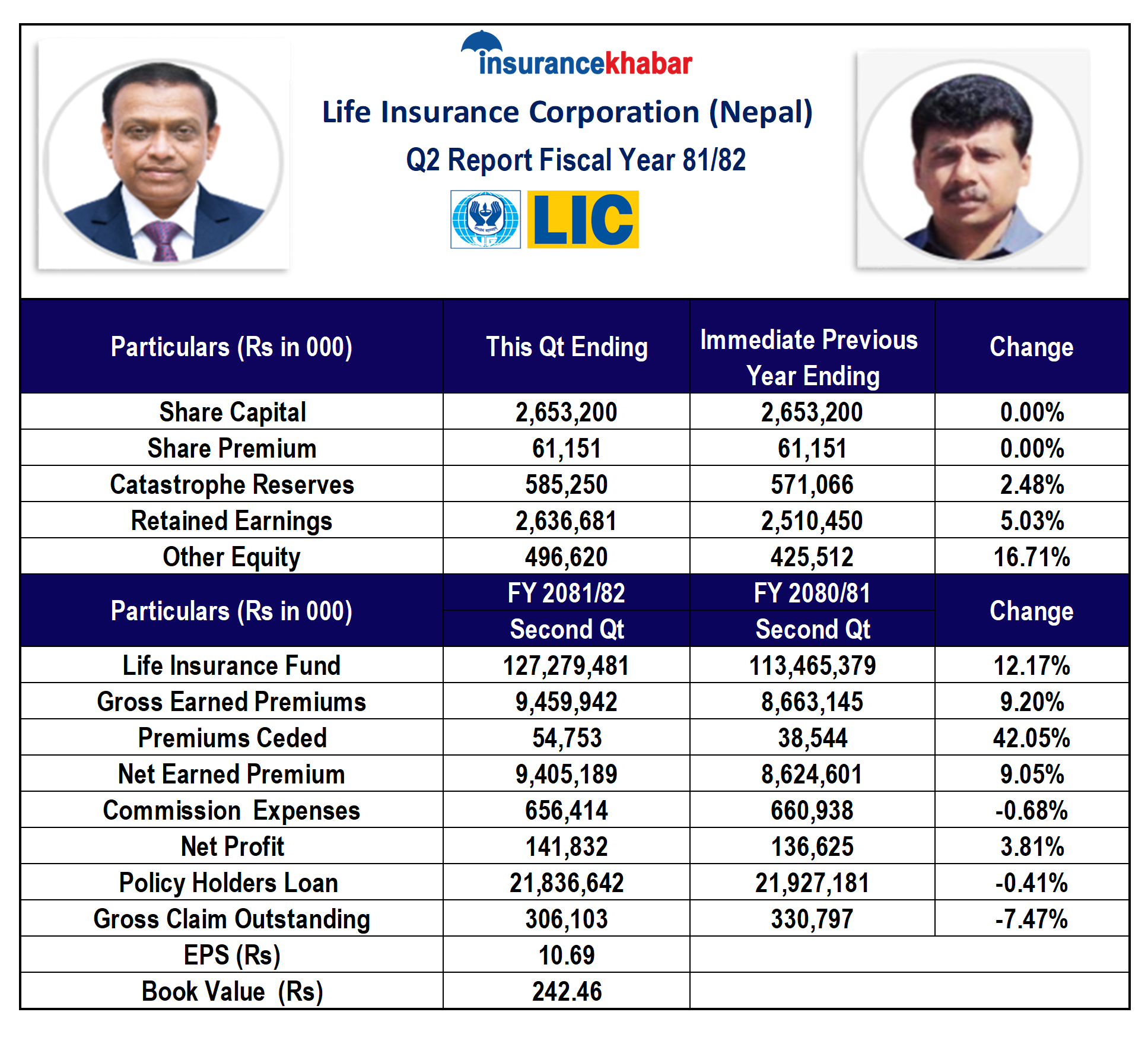 दोस्रो त्रैमाससम्म कम्पनीले ९ अर्ब ४५ करोड ९९ लाख रुपैयाँ कुल बीमाशुल्क आर्जन गरेको छ। अघिल्लो आर्थिक वर्षको सोही अवधिसम्म कम्पनीले ८ अर्ब ६६ करोड ३१ लाख रुपैयाँ कुल बीमाशुल्क आर्जन गरेको थियो। अघिल्लो आर्थिक वर्षको सोही अवधिको तुलनामा कम्पनीको कुल बीमाशुल्क आर्जन ९.२० प्रतिशतले वृद्धि भएको हो।