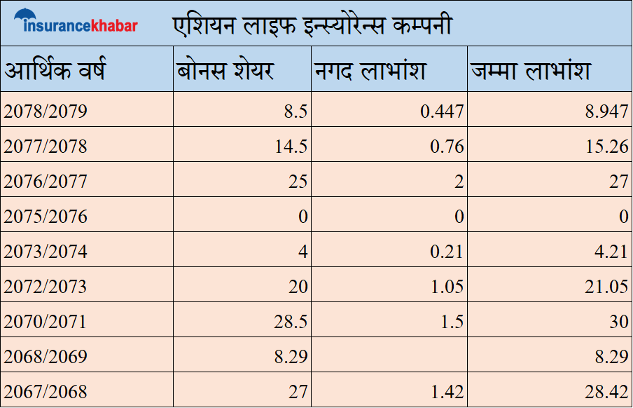 एशियन लाइफको लाभांश घोषणा, बोनस शेयर वितरण पछि चुक्ता पूँजी तीन अर्ब १४ करोड पुग्ने