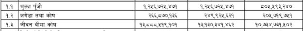 एक अर्ब २५ करोड ६७ लाख रुपैयाँ चुक्ता पूँजी रहेको कम्पनीले छिट्टै हकप्रद सेयर जारी गरि बिमा समितिले तोकेको २ अर्ब चुक्ता पुंजी कायम गर्ने योजना बनाएको छ, भने जगेडा कोषमा २६ करोड ६८ लाख रुपैयाँ, जीवन बीमा कोषमा १३ अर्ब ८८ करोड ८५ लाख रुपैयाँ संचित छ ।