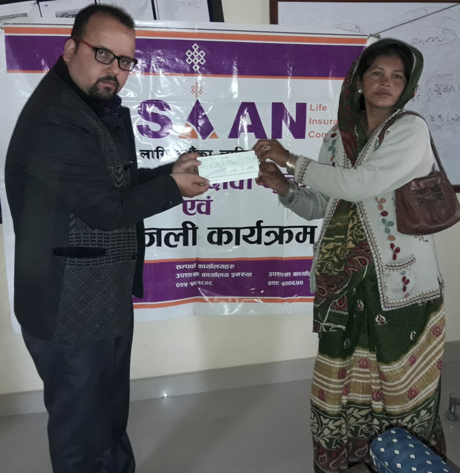बीमित मण्डलको टिभी रोग लागि मृत्यु भएको थियो । उनले ६ वर्ष अगाडि अग्रिम भुक्तानीमा बीमा गरी २५ हजार रुपैयाँ फिर्ता लिएका भएता पनि सो रकम कट्टा नगरी निजको श्रीमती रिखिया देवी लाई बोनस सहित सो रकम हस्तान्तरण गरेको कम्पनीले जनाएको छ ।
