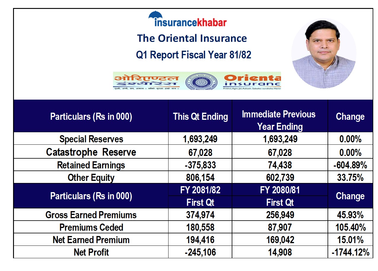 ओरिएन्टल इन्स्योरेन्सको ४५.९३%ले बढ्यो कुल बीमाशुल्क आर्जन, अन्य सूचक कस्ता ?