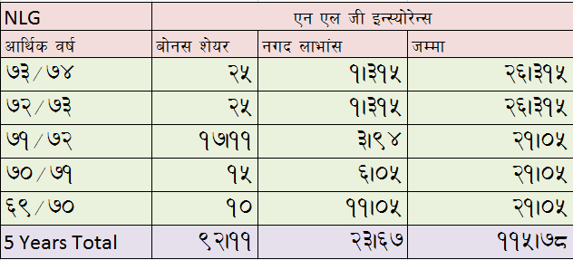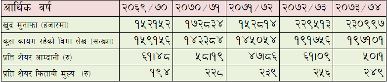 कम्पनीकोे विगत ५ वर्षको लाभास: