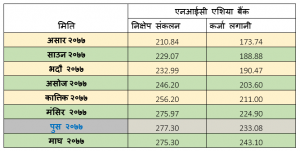 बैंकको पछिल्लो ७ महिनाको निक्षेप संकलन तथा कर्जा विस्तार