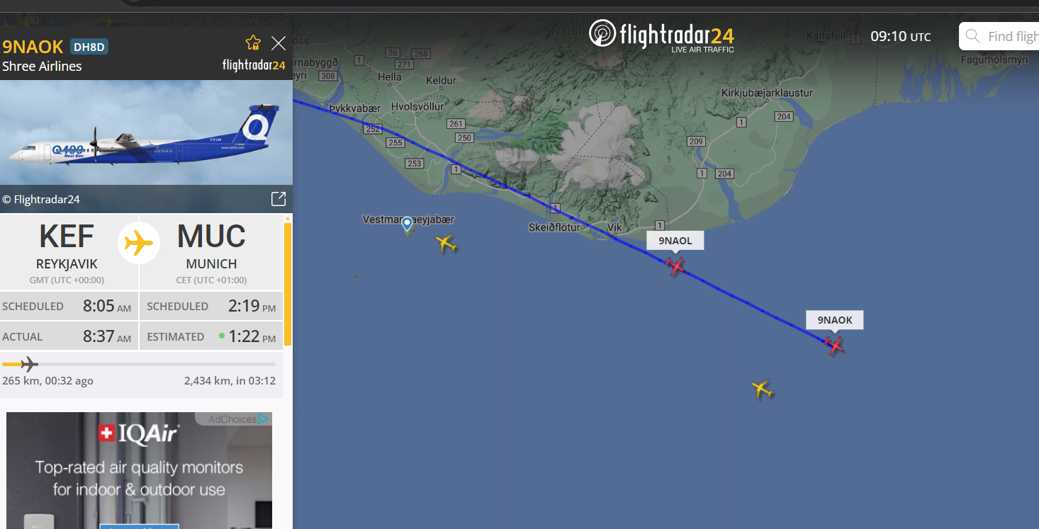 काठमाडौं । निजी क्षेत्रको तेश्रो ठूलो हवाई सेवा प्रदायक श्री एयरलाइन्सले खरिद गरेको दुईवटा ड्यास एट विमान जर्मनीको म्युनिख विमानस्थलबाट इजिप्टतर्फ प्रस्थान गरेको छ।अमेरिकाको पोर्टल्याण्ड विमानस्थलबाट शनिबार उडान भरेका यी दुबै विमान सोमबार रातिसम्ममा त्रिभूवन अन्तर्राष्ट्रिय विमानस्थलमा अवतरण गर्ने योजना छ छ।