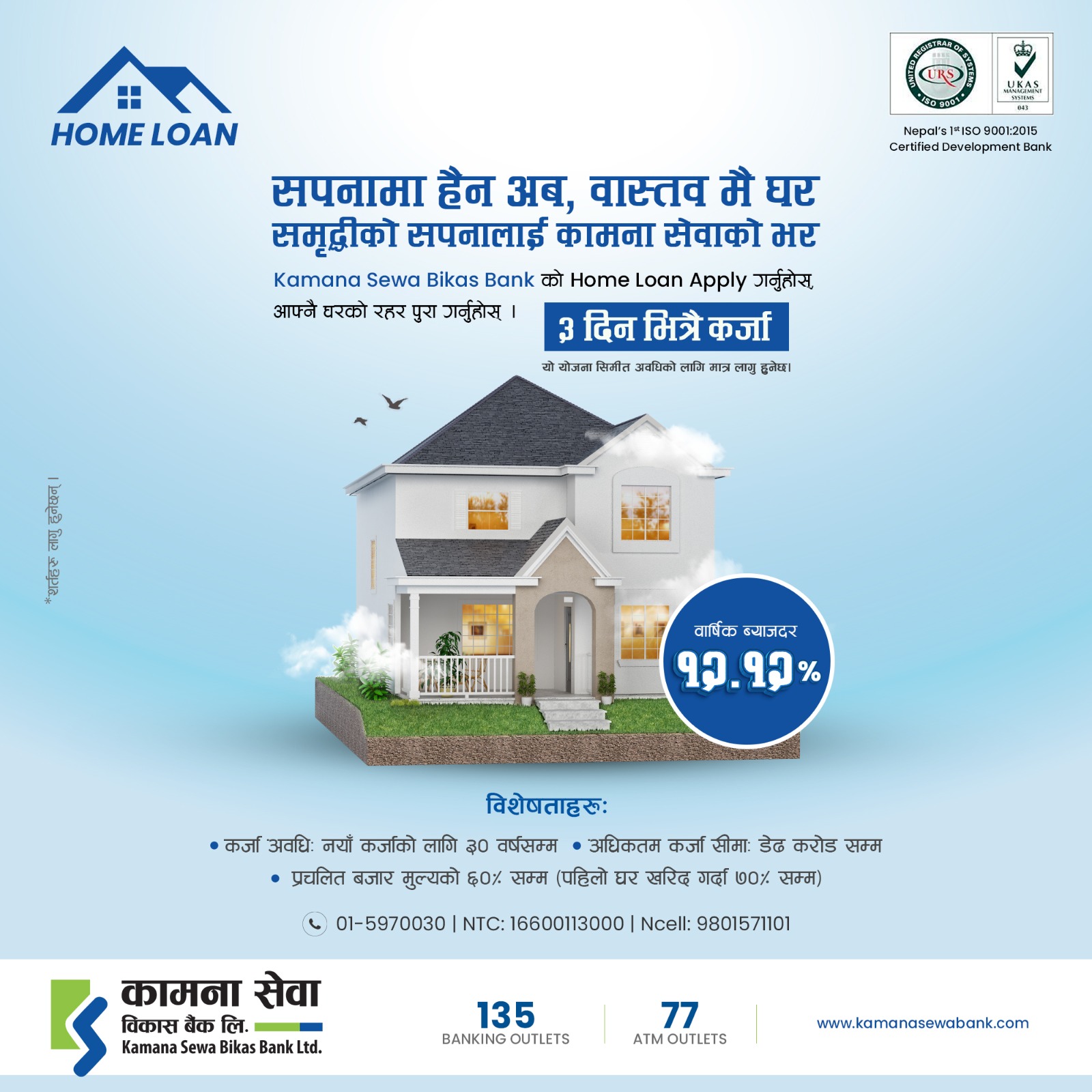 कामना सेवा विकास वैंकबाट १२.१२% ब्याजदरमा कर्जा पाइने