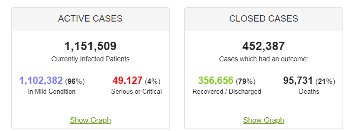 वर्ल्ड मेटर्सको तथ्यांक अनुसार