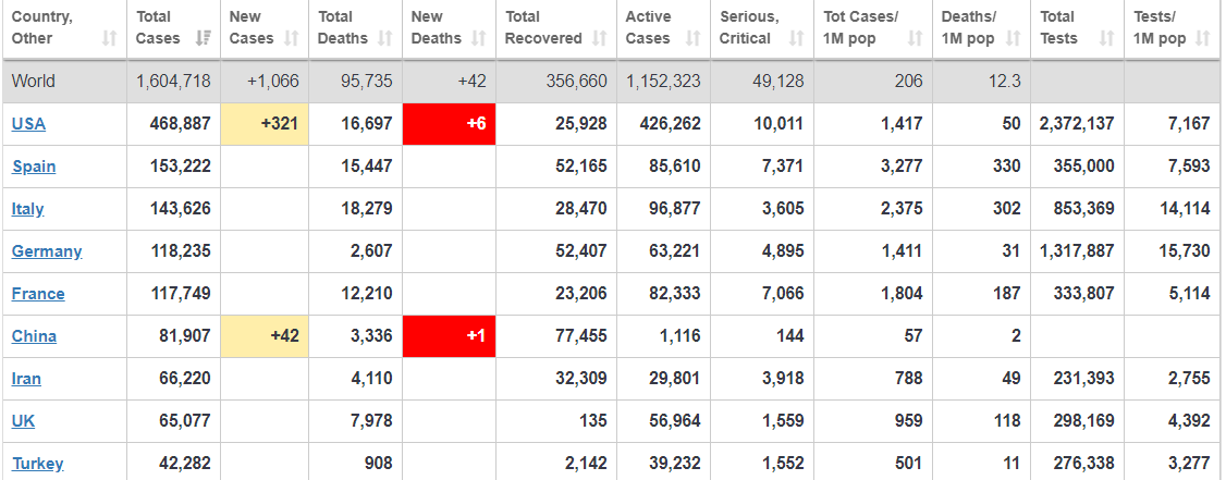 कारोना माहामारीबाट झण्डै १ लाखको मृत्यु, संक्रमितको संख्या १६ लाख नाघ्यो, कुन देशमा कति ?