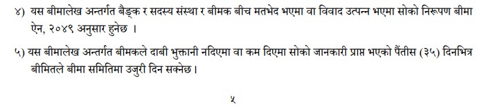 बीमा ऐन र नियमावलीमा हदम्याद नभएकोले कालिज तथा अन्य पंक्षी सम्बन्धी बीमा पोलिसीमा रहेको हदम्यादको प्रावधान बीमा समितिले लागू गरेको अवस्थामा बीमा ऐन तथा नियावलीले स्वतः रद्द गर्न भने सक्नेछ ।