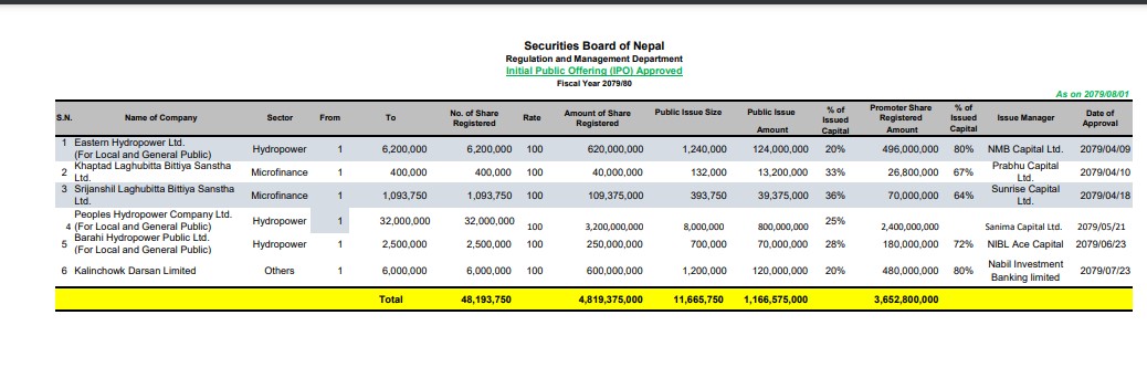 कम्पनीले कात्तिक २३ गते बोर्डबाट अनुमति पाएको हो । विक्री प्रबन्धक नबिल इन्भेष्टमेण्ट बैंकिङ्ग लिमिटेड रहेको छ ।