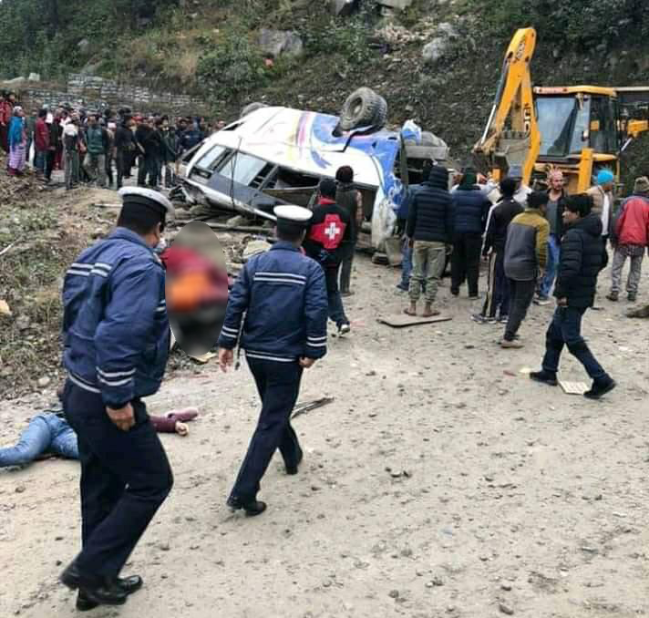 काठमाडौं । सिन्धुपाल्चोकमा आइतबार विहानै भएको बस दुर्घटनामा १३ जनाको मृत्यु भएको छ । दोलखाको पर्यटकीय नगरी कालिन्चोकबाट काठमाडौं आउँदै गरेको बस आइतबार विहान ८ः३० बजेको समयमा सिन्धुपाल्चोक सुनकोसी गाउँपालिका–७ छकिलो भन्ने ठाउँमा दुर्घटनाग्रस्त भएको हो । घटनामा १३ जना मृत्यु भएको निमित्त प्रमुख जिल्ला अधिकारी भिमकान्त शर्माले जानकारी दिए । मृत्यु हुनेको संख्या अझै बढ्ने अनुमान गरिएको छ ।