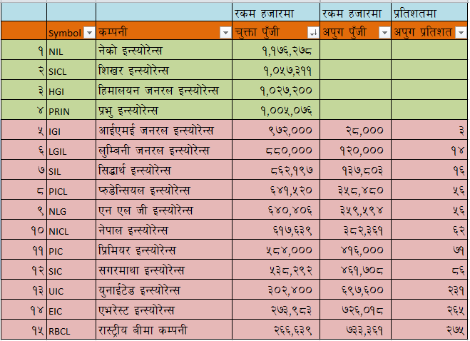 त्यस्तै युनाईटेड इन्स्योरेन्स र रास्ट्रीय बीमा कम्पनीले आफ्नो पुँजी क्रमश २३१ प्रतिशत र २७५ प्रतिशतले वृद्धि गर्नु पर्ने देखिन्छ ।