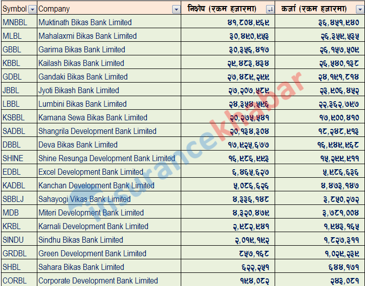 ( विकास बैंकहरुको तुलनात्मक अध्ययन गर्दा मर्ज र एक्युजिसनको कारणले कारोवार रोकिएका वित्तिय सस्थालाई समावेश गरिएको छैन। )