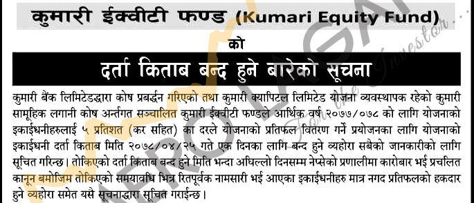 कुमारी इक्विटी फण्डको बुक क्लोज मिति तय