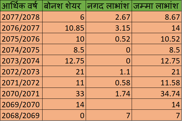 यस्तो छ विगत एक दशकको लाभांश वितरण