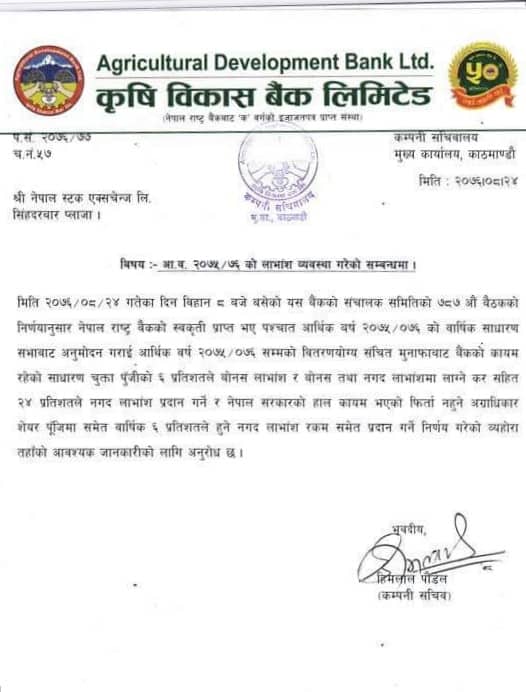 यद्यपि उक्त प्रस्ताव नेपाल राष्ट्र बैंकबाट स्वीकृत पश्चात आगामी साधारणसभाबाट अनुमोदन पश्चात मात्रै विरतण गर्ने बाटो खुल्नेछ ।