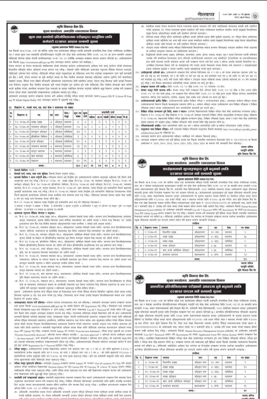 मुख्य कार्यालयका लागि कार्यक्षमता मूल्याङ्कन मार्फत विभिन्न पदमा ९४ जनाको लागि दरखास्त आह्वान गरेको छ । कार्यक्षमता तथा मूल्याङ्कन मार्फत उक्त तोकिएका पदमा बढुवा गर्नेछ । आन्तरिक प्रतियोगितात्मक परीक्षाको आधारमा विभिन्न ६ वटा पदमा ३४ जनाको लागि दरखास्त आह्वान गरेको छ ।