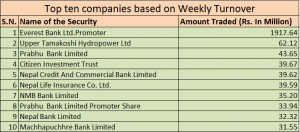 हेरौ यो साता सर्वाधिक शेयर कारोवार भएका १० कम्पनीहरु: