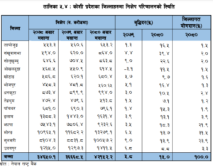 प्रतिवेदनअनुसार २०७९ असार मसान्तको तुलनामा २०८० असार मसान्तमा कोशी प्रदेशमा अवस्थित बैंक तथा वित्तीय संस्थाको कुल निक्षेप परिचालन १५ प्रतिशतले वृद्धि भई रु. ४ खर्ब २१ अर्ब र प्रवाह गरेको कर्जा २.५ प्रतिशतले वृद्धि भई रु.५ खर्ब ५७ अर्ब पुगेको छ।
