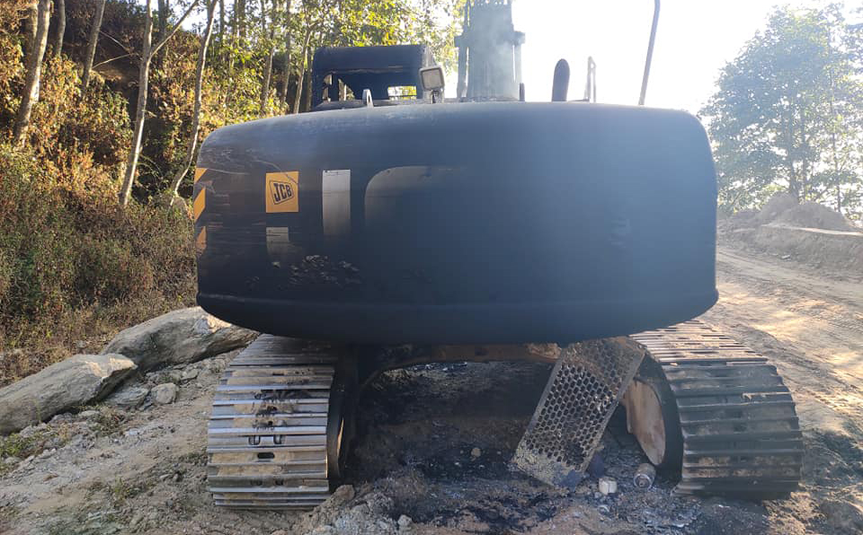 निर्माणस्थलमा शनिबार राति ९ बजेसम्म काम गरेको स्काभेटर मध्यराति अज्ञात समुहले जलाईदिएका हुन् । आगजनीका कारण दुई वटामा सामान्य क्षति भएको भने अरु दुई वटामा बढि क्षति भएको स्थानीयबासीले जनाएका छन् । खोटाङका डिएसपी बामदेव गौतमका अनुसार आगो लगाउने समुहको खोजीका लागि प्रहरी परिचालन गरिएको छ । खोटाङ्को दिक्तेल–चखेवाभन्ज्याङ सडकको काम गरिरहेका स्काभेटरमाथि भएको आगजनीबाट चार करोडभन्दा बढिको क्षति भएको कम्पनीले दावी गरेको छ । ९० लाख मूल्यका स्काभेटरमा पूर्ण क्षति भएकोले कम्पनीले डिजेलसहित पूर्ण क्षति अन्तर्गत चार करोडको बीमा दावी प्रक्रिया अघि बढाएको जनाएको छ ।