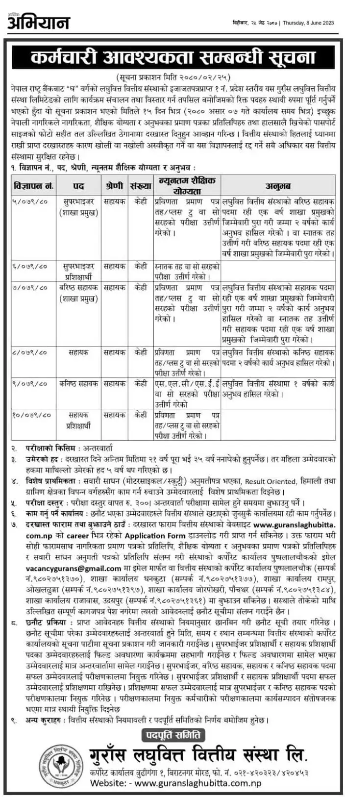 गुराँस लघुवित्तमा ६ पदका लागि रोजगारीको अवसर, आवेदन दिन ५ दिन बाँकी