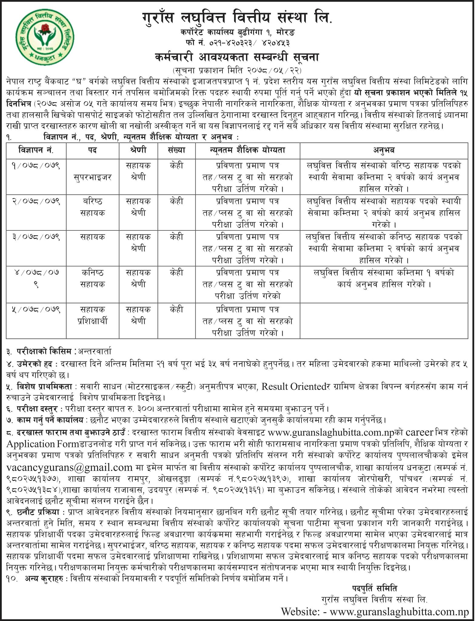 गुराँस लघुवित्तले माग्यो धेरै संख्यामा कर्मचारी,+2 पास गरेकालाई अवसर