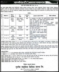 यसै गरि संस्थाले विभाग इलाका शाखाका लागि केहि व्यवश्थापन प्रशिक्षार्थी पदको लागि कर्मचारी माग गरेको छ ।