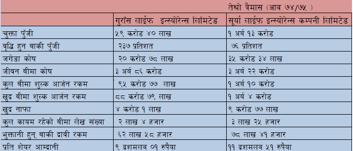 गुराँस लाइफ  इन्स्योरेन्स र सूर्या लाईफ  इन्स्योरेन्सलाई दाजेर हेर्दा