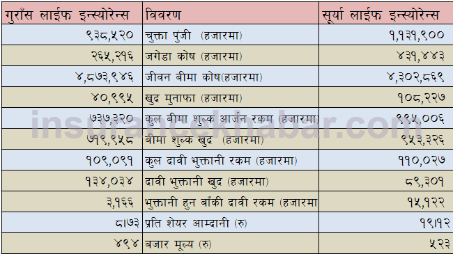 सूर्या लाईफ इन्स्योरेन्स र गुराँस लाईफ इन्स्योरेन्सलाई इन्स्योरेन्स खबर टिमले गरेको तुलनात्मक अध्ययन