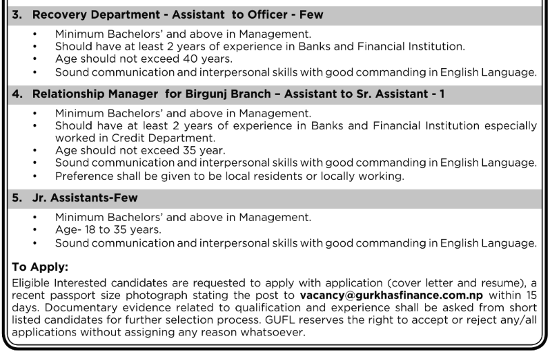 गोर्खाज फाइनान्सले माग्यो ५ पदका लागि कर्मचारी