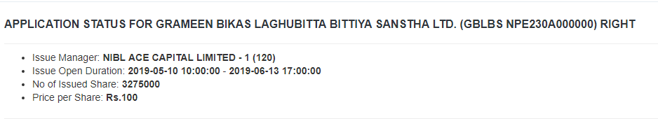 ग्रामीण बिकास लघुवित्त वित्तीय संस्थाले हकप्रद शेयर निष्काशन गर्नका लागि फागुन २७ गते धितोपत्र बोर्डबाट अनुमति पाएको थियो । संस्थाले १ सय रुपैयाँ बराबर अंकित मुल्यमा ५० प्रतिशतका दरले हकप्रद बिक्रि गरिरहेको छ ।