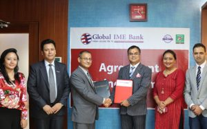 ग्लोबल आइएमई बैंक र आइएमई लाइफ इन्स्योरेन्स बीच बिहीबार बैंकास्योरेन्स सम्बन्धि सम्झौता भएको छ । उक्त सम्झौतापत्रमा ग्लोबल आईएमई बैंकका प्रमुख कार्यकारी अधिकृत जनक शर्मा पौड्याल र आइएमई लाइफ इन्स्योरेन्स कम्पनी लि का सहायक महाप्रबन्धक दिनेश अमात्यले हस्ताक्षर गरेका हुन्।