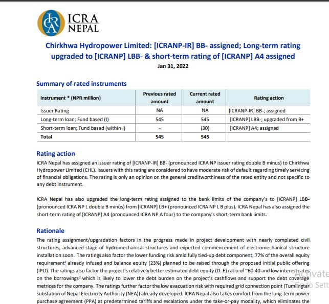 चिरख्वा हाइड्रोपावरले कति पायो रेटिङ ?