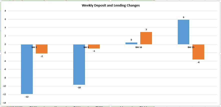 एक साता पहिला बैंकहरुले ४३ खर्ब ६८ अर्ब रुपैयाँ निक्षेप संकलन गरी ४१ खर्ब ९७ अर्ब रुपैयाँ कर्जा विस्तार गरेका थिए । यस अवधिमा सिडी रेसियो ९०.८१ प्रतिशत रहेको छ । बैंकहरुले नयाँ कर्जा लगानीको तुलनामा कर्जा असुली बढाउदा कर्जा प्रवाह बढेको हो ।