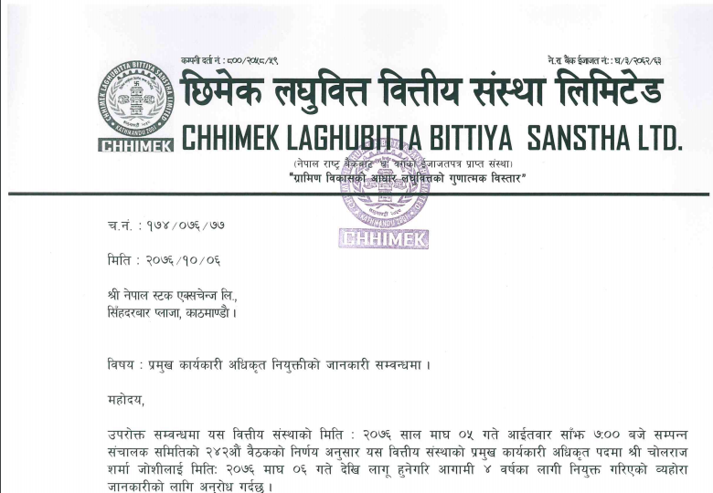 छिमेक लघुवित्तको सिइओमा चोलराज शर्मा नियुक्त