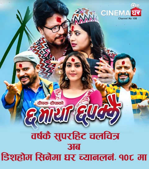 काठमाडौं । वर्षकै सर्वाधिक सफल चलचित्र “छ माया छपक्कै” अब डिशहोमको सिनेमा घर च्यानल नम्बर १०८ मा प्रदर्शन हुने भएको छ ।