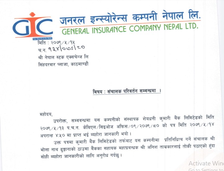 जनरल इन्स्योरेन्स कम्पनीमा सञ्चालक परिवर्तन