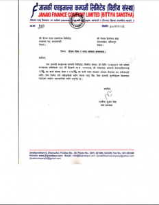 जानकी फाईनान्सले आफ्ना शेयरधनीहरुलाई २२ प्रतिशत का दरले वोनस सेयर र १.१६ प्रतिशतका दरले नगद लांभाश वितरण गर्ने भएको छ । जानकी फाईनान्सको भाद्र २१ गते बसेको सञ्चालक समितिको २६१ औँ बैठकले यस्तो निर्णय गरेको हो । सो निर्णय स्वीकृतीका लागि नेपाल राष्ट्र बैंकमा पठाईएको छ । सञ्चालक समितिको निर्णय राष्ट्र बैंक र आगामी वार्षिक साधारण सभाले पारित गरेपछि मात्र कार्यान्वयनमा आउनेछ ।