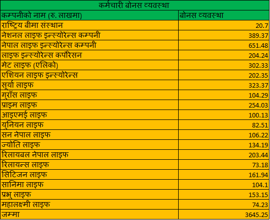 जीवन बीमा कम्पनीका कर्मचारीले ९ महिनाको मुनाफाबाट ३६ करोड ४५ लाख रुपैयाँ बोनस पाउने