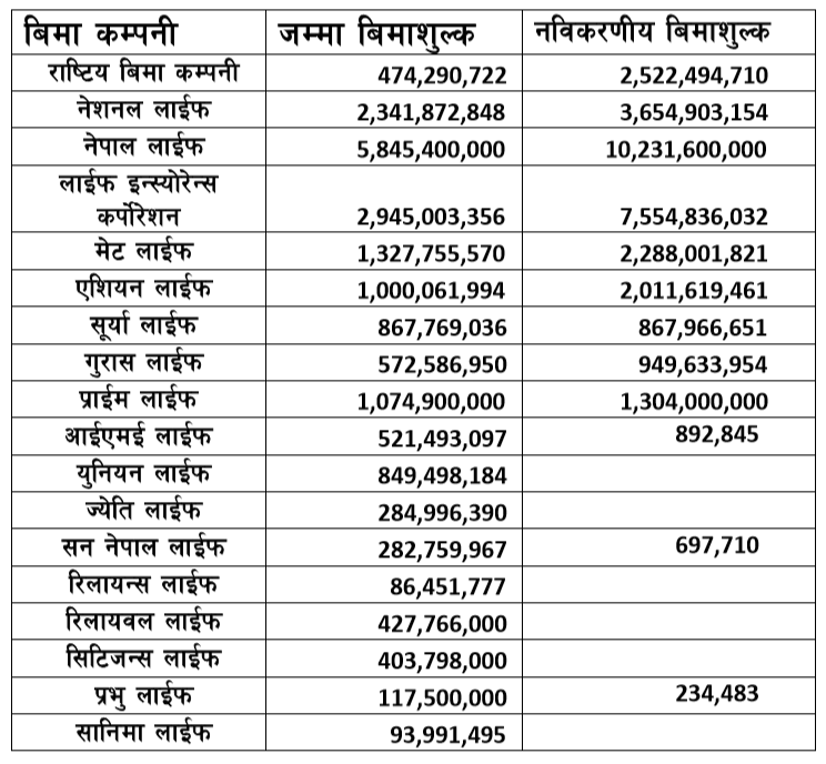 नयाँ कम्पनीहरुको बिमाशुल्क आम्दानी करिब ३ अर्ब