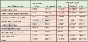 कम्पनीहरुले जारी गरे विविधि किसिमका पोलिसीहरुलाई एक मुष्ठ रुपमा समितिले गणना गरेको छ । यसरी जारी गरिएका अन्य जीवन बीमा लेखको संख्या एक लाख एक हजार वटा रहेको छ । यस्ता पोलिसी बिक्री गरेर कम्पनीहरुले ५ अर्ब ४१ करोड रुपैयाँ बीमा शुल्क आर्जन गरेका छन् । बीमा समितिका अनुसार हालसम्म कायम बीमालेखको संख्या भने ७२ लाख ४३ हजार वटा रहेको छ । चालु आर्थिक वर्षमा बीमा कम्पनीहरुले तुलतात्मक रुपमा अन्य वर्षको भन्दा धेरै बीमा लेख जारी गरेको देखिन्छ ।