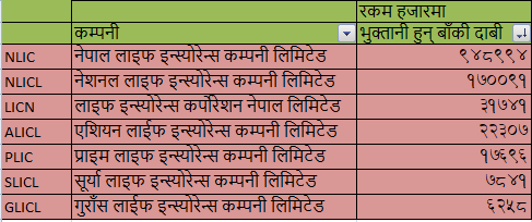 हेरौँ सबै जीवन बीमा कम्पनीहरूको भुक्तानी हुन बाँकी दाबी रकमको अवस्था :