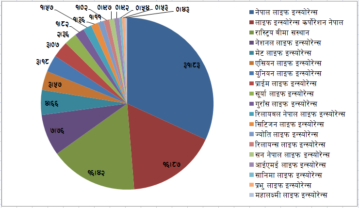 हेरौ १९ जीवन बीमा कम्पनीहरुको आर्थिक वर्ष ७६/७७ को प्रथम त्रैमास अनुसार बजार हिस्सा :