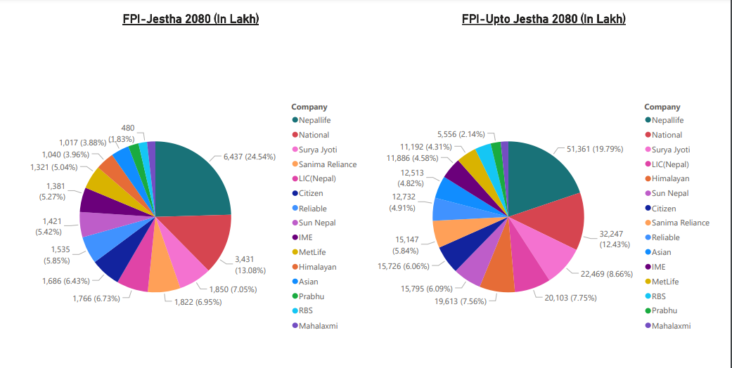 जेठ महिनासम्मको जीवन बीमा व्यवसायमा कुन कम्पनीको बजार हिस्सा कति ? हेर्नुहोस् इन्फोग्राफिक्स