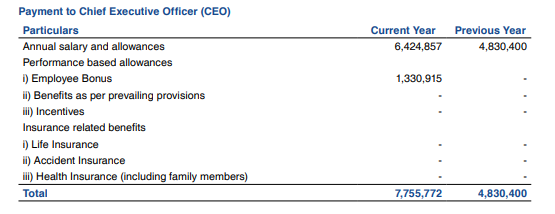 अघिल्लो आर्थिक वर्ष २०७६/७७ मा सञ्चालकहरुले समितिको बैठक लगायत अन्य समितिहरुको बैठक भत्ता बापत १३ लाख ३३ हजार तथा भ्रमण भत्ता सुविधा प्राप्त गरेका छन् । अन्य प्रमुख पदाधिकारीहरुले भने गत वर्ष ८७ लाख ९८ हजार रुपैयाँ बुझेका छन् ।