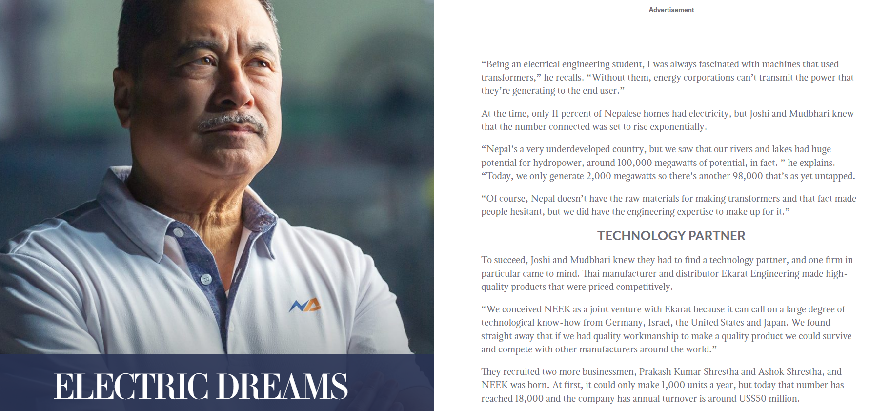 नेपाल उद्योग वाणिज्य महासंघका पूर्व अध्यक्ष कुश कुमार जोशी यो उद्योगको मुख्य लगानीकर्तामध्येका हुन् । हेटौंडाको थानाभख¥याङमा अवस्थित यो उद्योगको वार्षिक १८ हजार ट्रान्सफर्मर उत्पादन गर्ने क्षमता छ ।