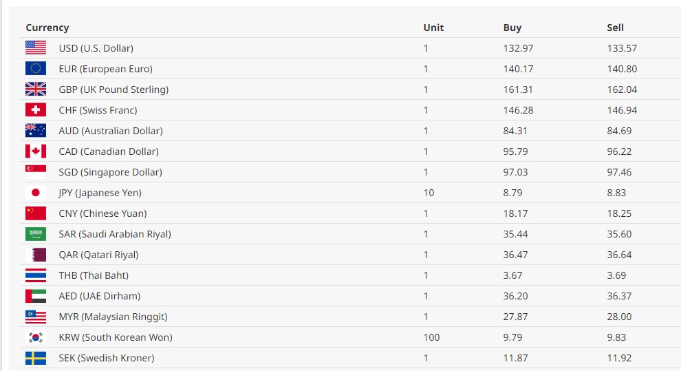आज युरो एकको खरिद दर १४० रुपैयाँ १७ पैसा र बिक्री दर १४० रुपैयाँ ८० पैसा छ । यता बिहीबार बेलायती पाउण्ड एकको खरिद दर १६१ रुपैयाँ ३१ पैसा र बिक्री दर १६२ रुपैयाँ ०४ पैसा तोकिएको छ ।