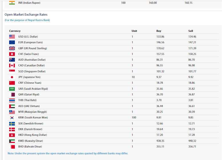 त्यस्तै, अष्ट्रेलियन डलर एकको खरिददर ८६ रुपैयाँ ३१ पैसा र बिक्रीदर ८६ रुपैयाँ ७० पैसा तोकिएको छ। क्यानेडियन डलर एकको खरिददर ९६ रुपैयाँ ५५ पैसा र बिक्रीदर ९६ रुपैयाँ ९८ पैसा रहेको छ ।