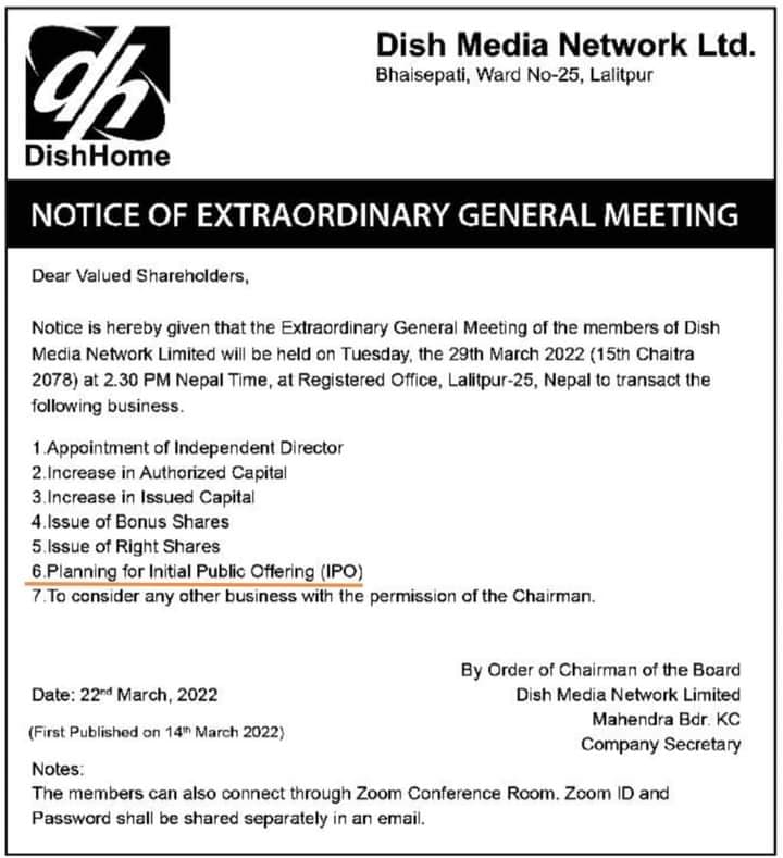 डिस होमले डाक्यो साधारणसभा, हकप्रद र बोनस शेयर पछि आइपिओ निष्काशन गर्ने