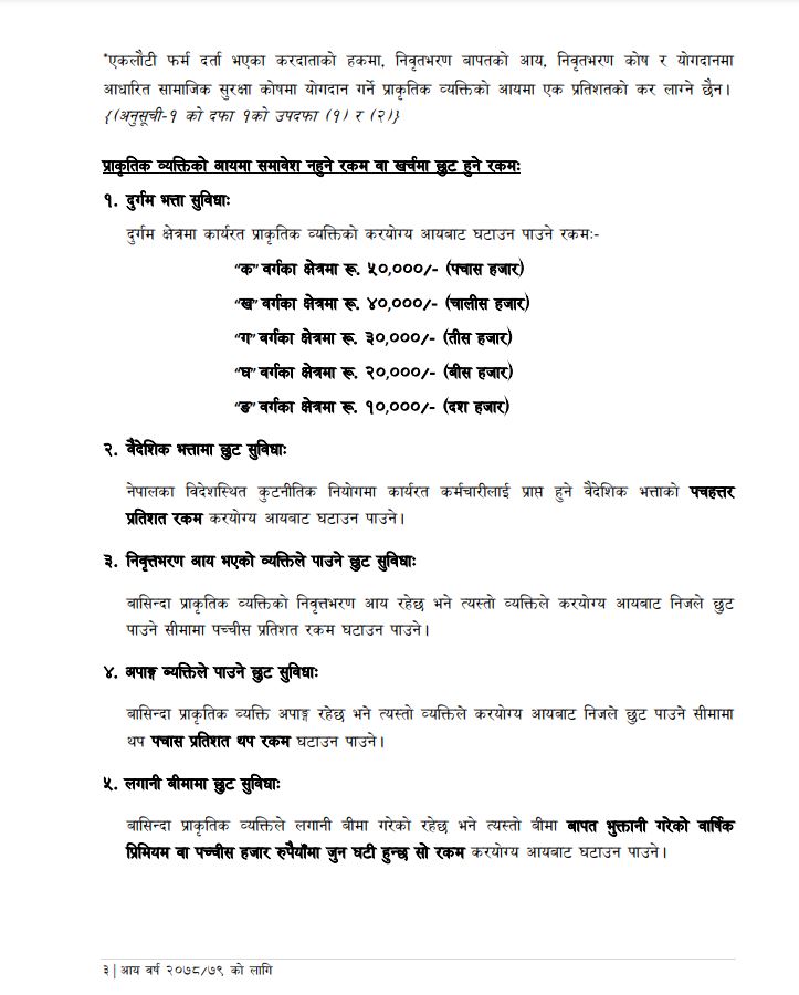 वार्षिक रु ४ लाख ५० हजार रुपैयाँसम्म कमाई गर्ने व्यक्तिको हकमा १ प्रतिशतको दरमा ४ हजार ५ सय रुपैयाँ ।
