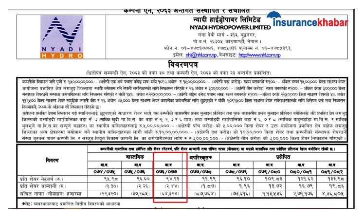 काठमाडौं । न्यादी हाइड्रोपावरको आइपीओ बाँडफाँड सम्पन्न भएको छ । न्यादी हाइड्रोपावरको पहिलो शेयर कारोबारका लागि न्युनतम प्रतिकित्ता ९४ रुपैयाँ १३ पैसा र अधिकतम २८२ रुपैयाँ ३९ पैसा सम्म रेञ्ज पाउने सम्भावना छ । पहिलो कारोवारको लागि कम्पनीले किताबी मूल्य देखि किताबी मूल्यको तीन गुणासम्म रेञ्ज पाउने गर्छन । कम्पनीको आर्थिक वर्ष ७६/७७ को वास्तविक नेट्वर्थको आधारमा रेञ्ज पाउने सम्भावना छ ।